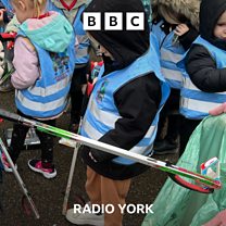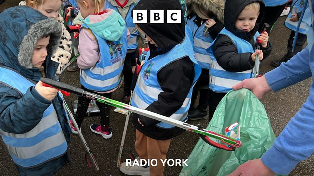 Mick Couzens from Keep Scarborough Tidy goes litter-picking with Seamer Pre-School.