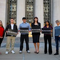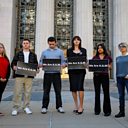 (Picture: Supporters of plaintiff Kaley G.M. hold signs as they stand outside the courthouse in Los Angeles, California, on the day she takes the stand at a trial in a key test case accusing Meta and Google's YouTube of harming children's mental health through addictive social media platforms. Credit: Reuters / Mike Blake.)