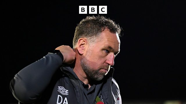 Matt Dean talking to David Artell after Grimsby win 3-1 at home to Salford City.