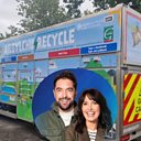 Adelle Pritchard yn datgan enwau loriau ailgylchu newydd Cyngor Gwynedd ar raglen Trystan ac Emma.