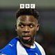 Mike Fondop reacts to Oldham's 3-1 win against Tranmere.