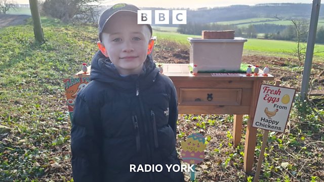 Six-year-old Sam collects eggs every day and sells them from a roadside stall near Malton. His local community has shown support after some of his produce was stolen, as Seb Cheer reports.