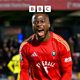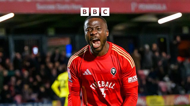 Dan Udoh reacts to his winner in Salford's 1-0 win at Harrogate.