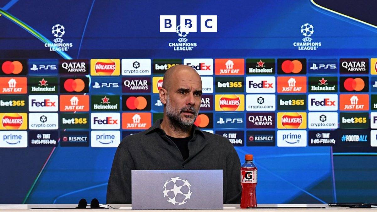Pep Guardiola reacts to Man City's 2-1 (5-1agg) loss to Real Madrid.