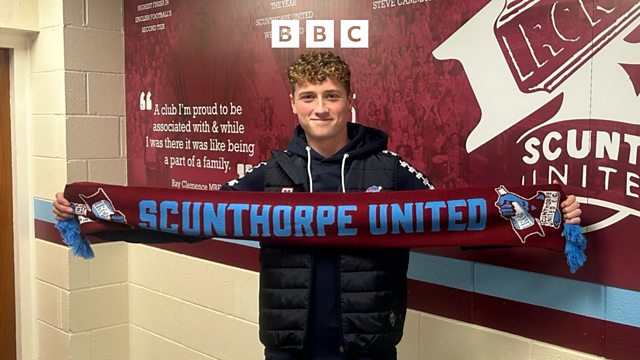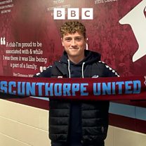 The defender celebrates making his league debut for Scunthorpe United in the 1-0 defeat at home to Eastleigh.