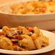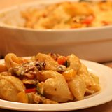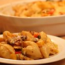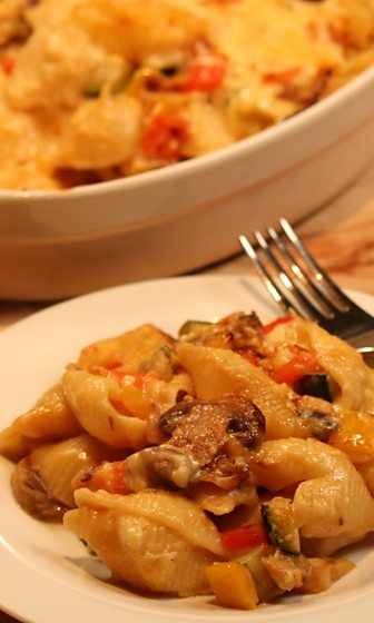 7. Season and place in gastronome tins, sprinkle with cheese.