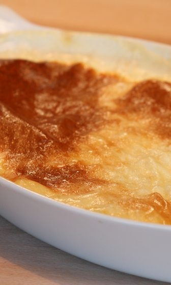 4. Place pudding in gastronome tins and brush with a little melted butter