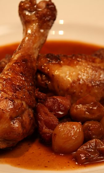 12. Slip the chicken back into the pan, then cover and place into the oven to cook for about 45 minutes.