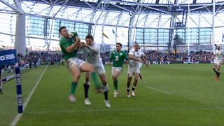 Robbie Henshaw scores the only try of the game to ensure an Ireland victory over England at the Aviva. England faught back with a couple of penalties from George Ford to end the game on a more respectable 19-9 scoreline.