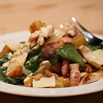 Top with the sliced chicken and the Parmesan cheese and serve.