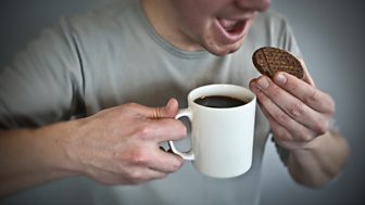 When Zaphod Beeblebrox visits the entrance lobby of the Guide: the "second hippest place in Ursa Minor", he is informed by the receptionist that Zarniwoop is on an intergalactic cruise in his office. After being distracted from his original search, Zaphod happens upon Zarniwoop in the first class cabin of an intergalactic cruise ship. The ship has been delayed 900 years whilst awaiting a complement of lemon-soaked paper napkins. The robot crew-an auto-pilot and an android stewardess-have placed the passengers into suspended animation and only bring them round every 10 years for coffee and biscuits.