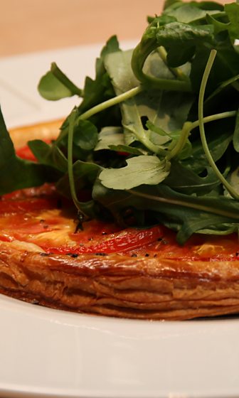 8. Combine the salad leaves with the dressing and serve with the tart, either hot or cold.