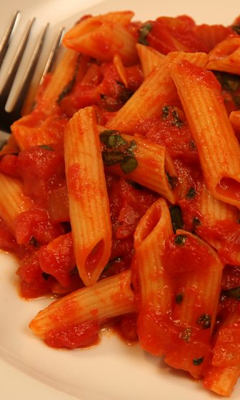 Penne Pasta with Tomato and Basil Sauce
