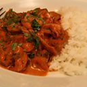 2. Add tomato puree, stock, water and cream, bring to boil and simmer. Add parsley.