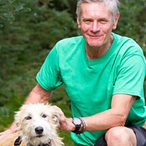 Colin, a Landscape Gardener and Game Keeper, and Mitch his Lurcher, Bedlington, Collie cross.