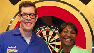 Comedian Lee Mack is paired with darts World Champion Martin 'Wolfie' Adams as they attempt to win the Let's Play Darts trophy.