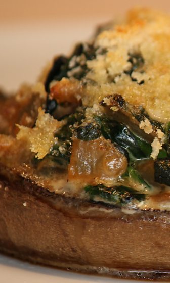 Flat Mushrooms with Spinach, Basil and Parmesan