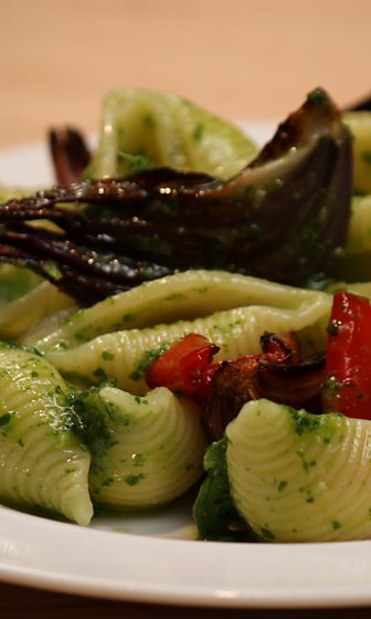 Pasta Shell Salad with Roasted Red Onions and Basil