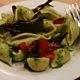 5. Chop the tomatoes into small dice and add to the drained pasta. Pour over the dressing and add the onions and the oil left in the tray from roasting also.