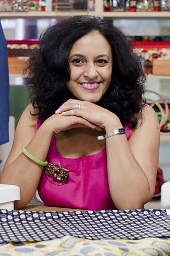 Originally from Bradford, Neela was taught to sew by her mother on an old Singer machine when she was just eight. She started collecting patterns when she was young and now has an extensive back catalogue, which she uses for her designs.
