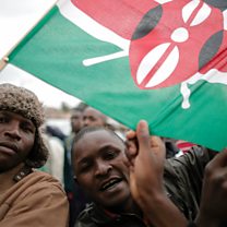 Photo: Supporters of incumbent Kenyan pesident Uhuru Kenyatta hold a Kenyan flag. Credit: Marco Longari/AFP/Getty Images.