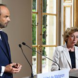 (Photo: French Prime Minister Edouard Philippe (L) and French Labour Minister Muriel Penicaud (R). Credit: Alain Jocard/AFP/Getty Images)