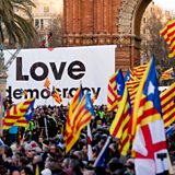 Image: Pro-independence of Catalonia demonstrators. Credit: Alex Caparros/Getty Images.