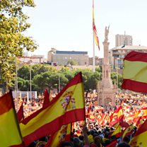 (Photo: Protestors in Madrid demonstrate against the independence of Catalonia. Credit: JAVIER SORIANO/AFP/Getty Images)