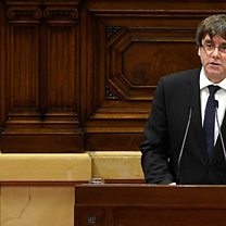 The Catalan President, Carles Puigdemont says that the people of Catalonia have earned the right to separate from Spain, but that the declaration of independence should be suspended to allow for dialogue.