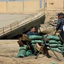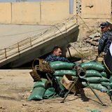 (Photo: Iraqi forces sit on a river bank across from Kurdish Peshmerga positions on the southern outskirts of Kirkuk. Credit: Getty images.)