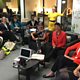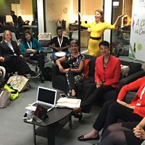 (Photo: Nuala McGovern and 100 Women guests in California.Credit: BBC)
