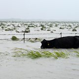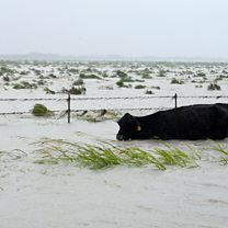 (Photo: A cow struggles to keep its head above floodwaters during Hurricane Harvey near Fulton, Texas. Credit:REUTERS)
