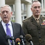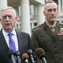 (Photo: US defence secretary James Mattis speaks to the press with Gen. Joseph Dunford about the situation in North Korea Credit: Nicholas Kamm/AFP/Getty Images)