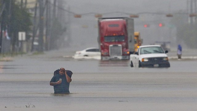 America's fourth largest city, Houston, faces an "unprecedented" flooding emergency. Twenty helicopters are being used to evacuate people from rooftops, after more than three-quarters of a metre of rain has fallen, with more heavy rain forecast. Also, Indian authorities prepare for further unrest after the conviction of the self-styled guru Gurmeet Ram Rahim Singh and a ban on plastic carrier bags in Kenya comes into force with severe penalties for offenders.
