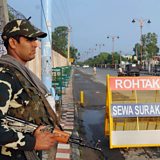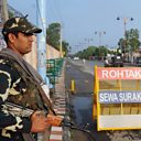 (Photo: Indian security personnel stands guard on one of the roads leading to the jail where spiritual leader Gurmeet Ram Rahim Singh is kept.