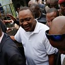 ( Picture: Kenya's president at a market surrounded by security personnel. Credit: Reuters.)