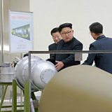 The state news agency in Pyongyang says the North Korean leader, Kim Jong Un, has inspected a new powerful hydrogen bomb that can be loaded into an intercontinental ballistic missile. (photo: Kim Jong-un views a hydrogen bomb that can be loaded on a ballistic missile. Credit: Getty Images)