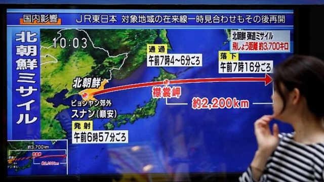 ( Photo: A Tokyo passer-by looks at a TV screen reporting N Korea's missile test. Credit: Reuters)