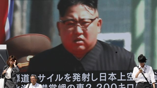 The US and China trade accusations after North Korea test-fires another missile over Japan. Also: police say London train blast is a terror incident and US trials weight-loss 'fat patches' to target obesity.