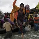 (Photo: Rohingya refugees arrive in Bangladesh by wooden boat from Myanmar. Credit: Getty Images)