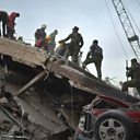 (Photo: Rescuers, firefighters, policemen, soldiers and volunteers search for survivors in a flattened building in Mexico City