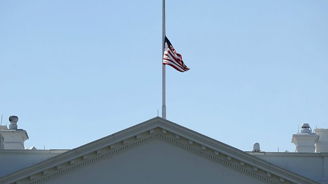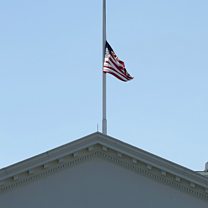 (US flag flies at half-mast over White House by order of President Trump, after Las Vegas mass-shootings)