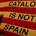 (Picture: Protesters shadows are seen on a Catalan flag. Credit: Chris McGrath/Getty Images)
