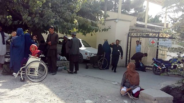 (Photo: Patients are evacuated from a Red Cross hospital in Mazar-e-Sharif, Afghanistan, on 11 September 2017, after a physiotherapist was shot dead. Credit: European Photopress Agency)