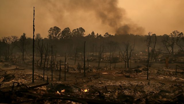 Parts of California's wine region are being ravaged by fast-spreading fires that have killed at least 10 people. A state of emergency has been extended, with twenty-thousand people forced to flee.