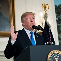 (Photo: President Donald Trump makes a statement on the administration"s strategy on Iran in the White House on October 13, 2017. Credit: Drew Angerer/Getty Images)