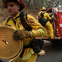 Nine thousand fire fighters battle the state's worst wildfires since 1933. At least thirty six people have been killed and almost nine hundred square kilometres have been burned. Also, President Trump has threatened to end participation in an international nuclear deal with Iran, and a new airport opens on one of the world's most isolated island communities.
