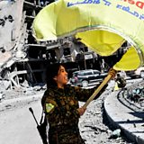 (Picture:Soldier celebrating in Raqqa, Credit:Getty)