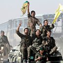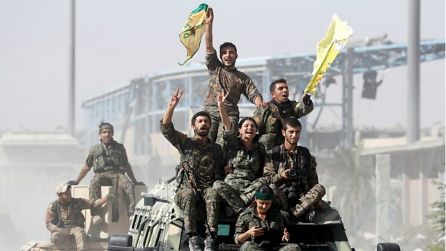 (Photo: Syrian Democratic Forces fighters celebrate aboard military vehicle in Raqqa. Credit: Reuters/Erik de Castro)