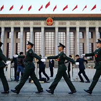 (Photo: Paramilitary police march past the closing session of the National Congress of the Communist Party of China. Credit: Reuters)
